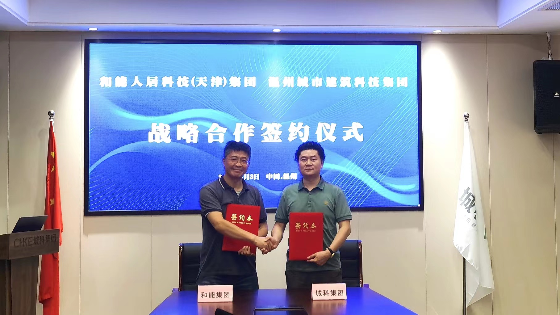 8月3日,和能人居科技集團與溫州城市建筑科技集團有限公司(簡稱:城科集團)簽訂了戰(zhàn)略合作協(xié)議。和能人居科技集團副總裁田冠勇與城科集團執(zhí)行董事、總裁黃國華代表雙方簽署協(xié)議。