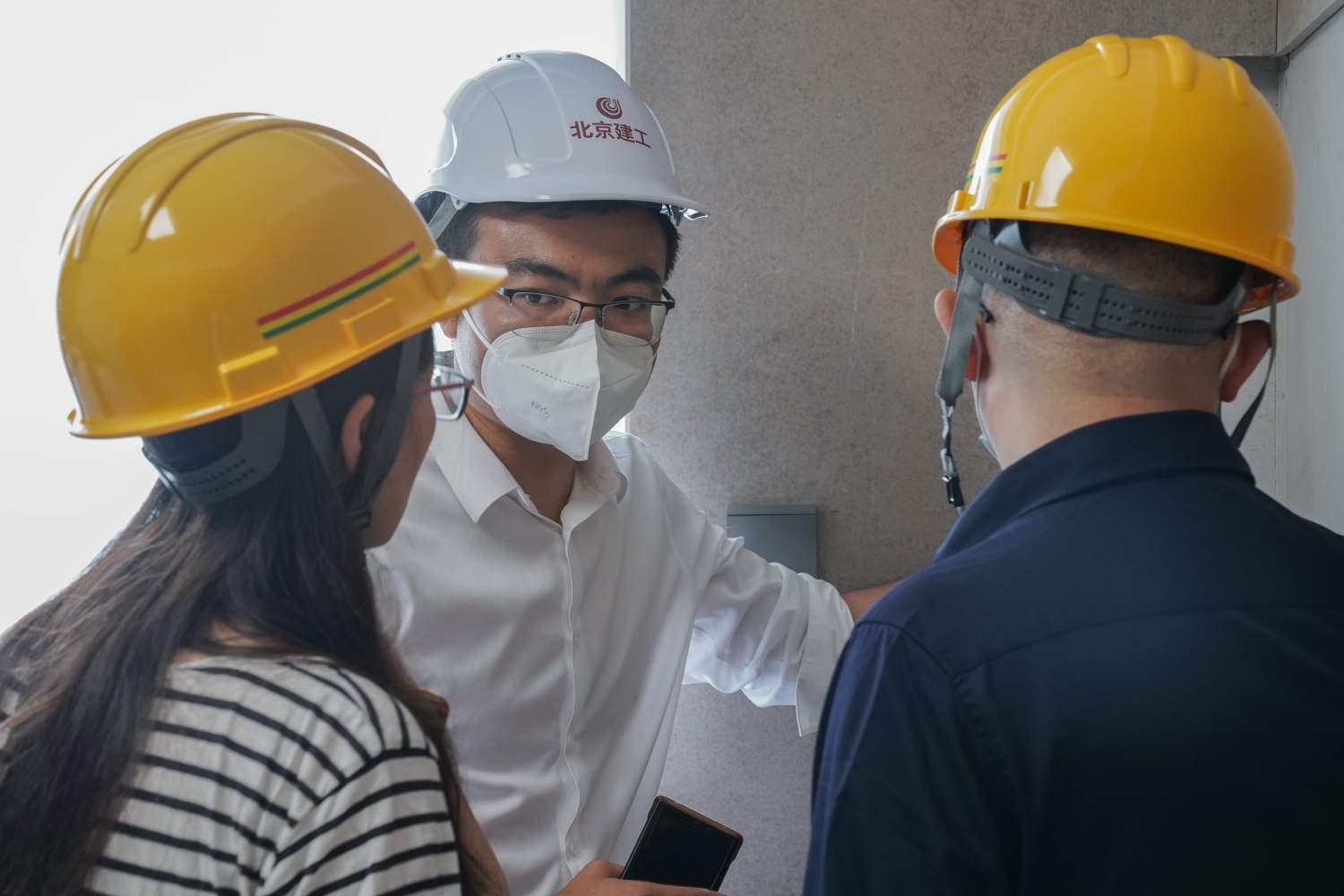 在此次參觀過(guò)程中,眾人循著北京城市副中的脈絡(luò),近距離觀看燕保丁各莊家園、含英園、朗清園、北京城市副中心職工周轉(zhuǎn)房一期、C2行政辦公區(qū)、0701街區(qū)等眾多由和能參與實(shí)施的裝配式裝修項(xiàng)目,從而感受智能建造的魅力。