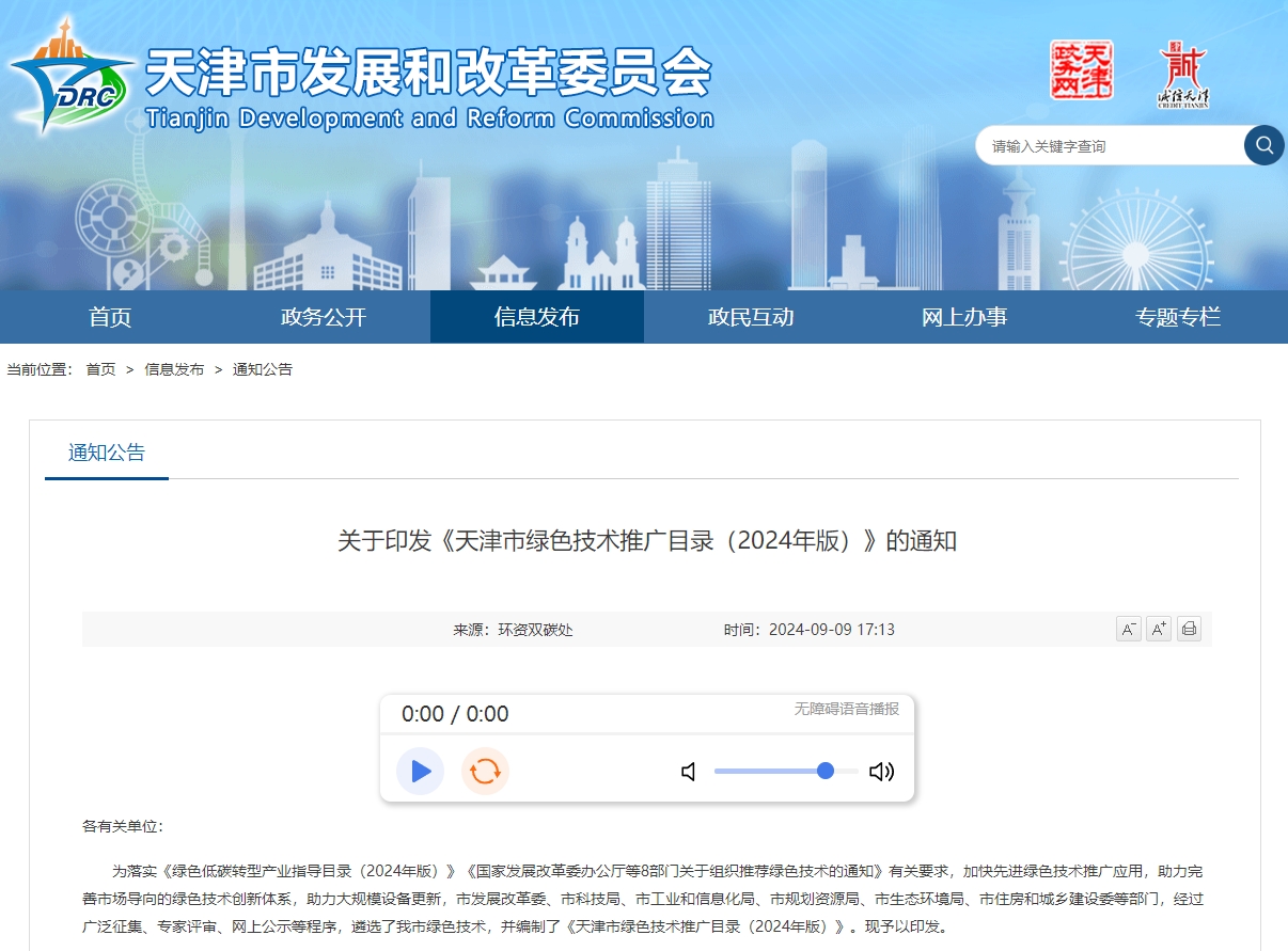 為落實(shí)《綠色低碳轉(zhuǎn)型產(chǎn)業(yè)指導(dǎo)目錄(2024年版)》《國(guó)家發(fā)展改革委辦公廳等8部門(mén)關(guān)于組織推薦綠色技術(shù)的通知》有關(guān)要求,加快先進(jìn)綠色技術(shù)推廣應(yīng)用,助力完善市場(chǎng)導(dǎo)向的綠色技術(shù)創(chuàng)新體系,助力大規(guī)模設(shè)備更新,市發(fā)展改革委、市科技局、市工業(yè)和信息化局、市規(guī)劃資源局、市生態(tài)環(huán)境局、市住房和城鄉(xiāng)建設(shè)委等部門(mén),經(jīng)過(guò)廣泛征集、專(zhuān)家評(píng)審、網(wǎng)上公示等程序,遴選了天津市綠色技術(shù),并編制了《天津市綠色技術(shù)推廣目錄(2024年版)》。