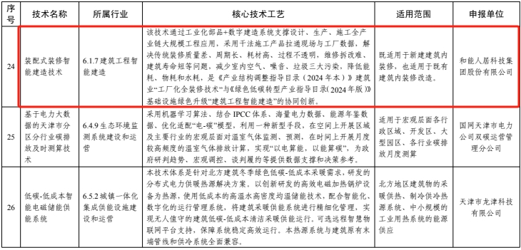 活動(dòng)得到了業(yè)界的積極響應(yīng)和廣泛參與,經(jīng)過(guò)專(zhuān)家組認(rèn)真評(píng)議和遴選,和能人居科技集團(tuán)裝配式裝修智能建造技術(shù)成功入選《天津市綠色技術(shù)推廣目錄(2024年版)》。