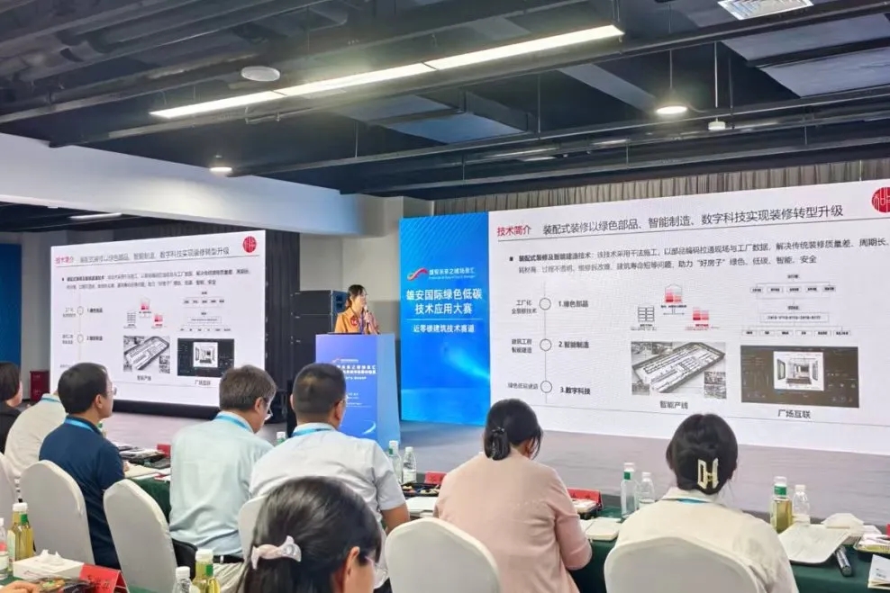 大賽啟動以來,得到了全國各地科創(chuàng)企業(yè)團(tuán)隊的積極響應(yīng),共有來自全國26個省份336家企業(yè)團(tuán)隊的389項作品參賽,初賽中,專家評審團(tuán)細(xì)致評估,最終有160個作品晉級決賽。決賽現(xiàn)場,河北省住房和城鄉(xiāng)建設(shè)廳、生態(tài)環(huán)境廳、能源局等相關(guān)負(fù)責(zé)人,雄安新區(qū)各有關(guān)部門,行業(yè)專家、資本機構(gòu),各地市代表,雄安疏解央企及高校、建設(shè)單位代表等,約300余人齊聚場景匯。作為國家級綠色技術(shù)中唯一的內(nèi)裝技術(shù)企業(yè),和能人居科技集團(tuán)提報的《裝配式裝修及智能建造技術(shù)》經(jīng)過激烈角逐脫穎而出,以總排名第五的成績斬獲“雄安國際綠色低碳技術(shù)應(yīng)用大賽”第二組,近零碳建筑材料、設(shè)備和技術(shù)組三等獎。