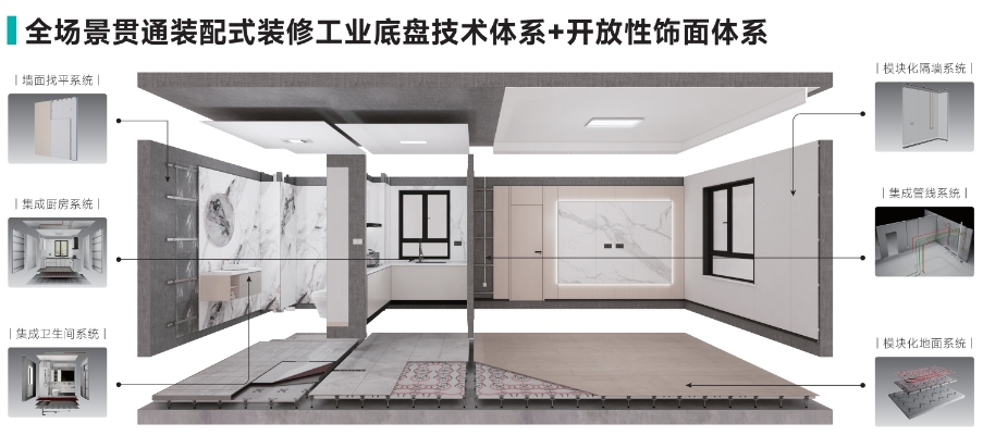 近零碳建筑賽道緊扣“好房子”建設(shè),以好材料、好技術(shù)、好建造、好運維為核心,旨在打造系統(tǒng)性近零碳建筑解決方案。和能裝配式裝修及智能建造技術(shù)采用裝配式裝修融合智能建造技術(shù)建立了基層裝修與飾面層可分離的全屋裝修綠色部品體系,基層裝修使用模塊化的工業(yè)底盤部品提升品質(zhì)與效率,飾面層支持多樣化選擇與DIY定制,解決裝修標(biāo)準(zhǔn)化與個性化的協(xié)調(diào)問題,同時依托智能化、低碳化生產(chǎn)與施工技術(shù),減少室內(nèi)裝修空氣、噪音、垃圾污染,降低能耗、物耗和水耗,實現(xiàn)建筑全生命期綠色低碳發(fā)展,滿足“人民對美好生活向往”。